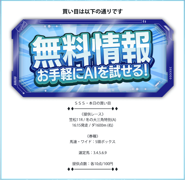 高精度AIが導きだした無料予想を公開中!(1日12レース分)