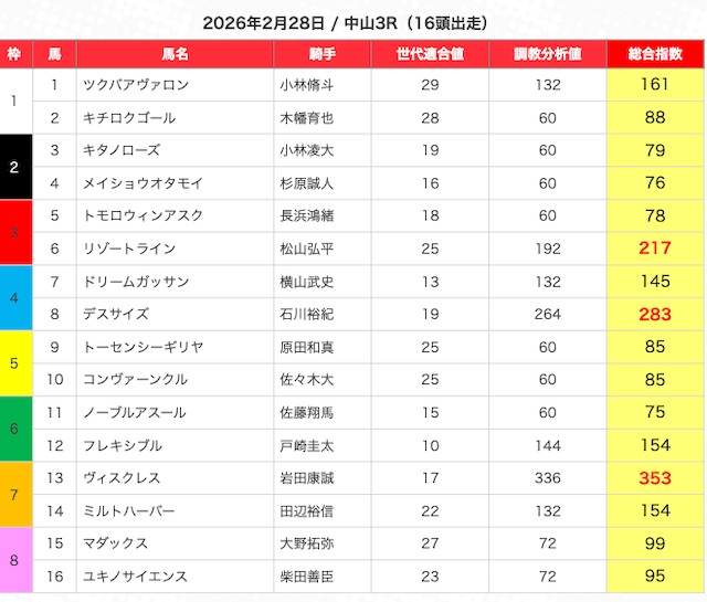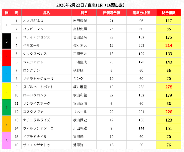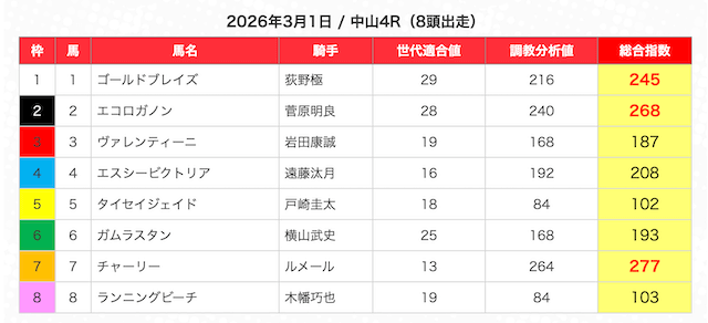 - 指数・AIスコア:独自ロジックで期待値や能力を数値化