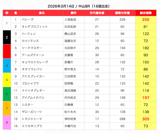 最新30件の詳細- 的中 3月14日 中山8R