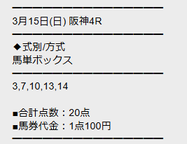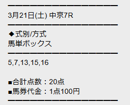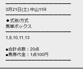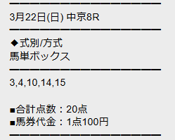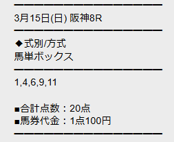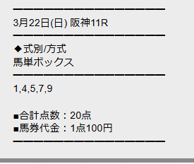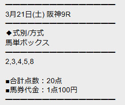 最新30件の詳細- 的中 3月21日 阪神2R