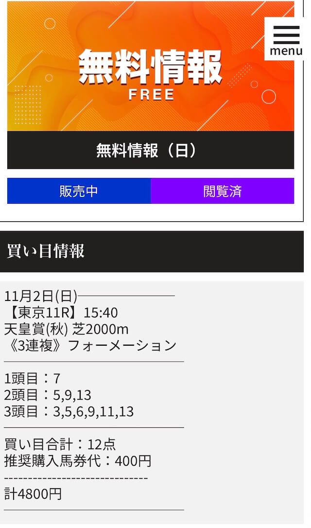 有料予想になると収支を一気に伸ばせる可能性がアップし、利益を増やしたい方にとっては必要不可欠と感じました。
