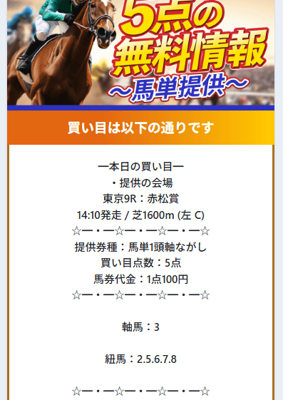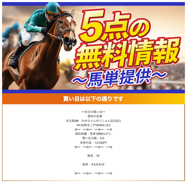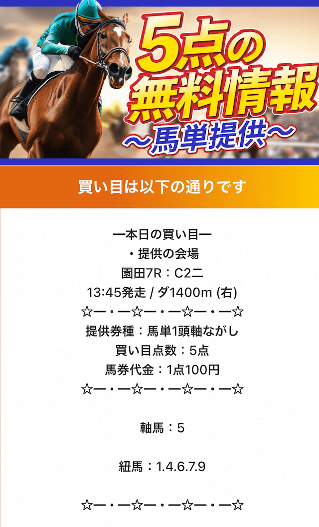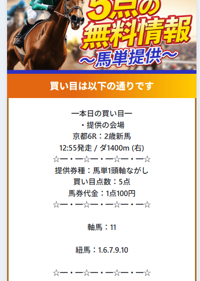 初参加の時に2レース提供で2つとも的中したので印象に残ってます。