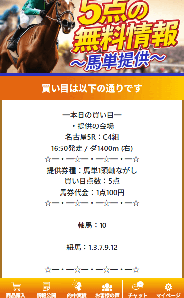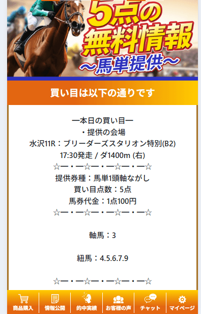 金銭的な参加ハードルを下げて利益を増やしたい方にとって、ぜひ利用してほしい競馬予想サイトと感じました。
