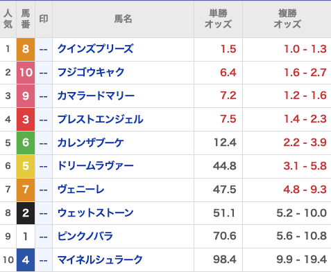 その中で選ばれた馬は妥当なのか、最終オッズをもとにチェックしてみました。