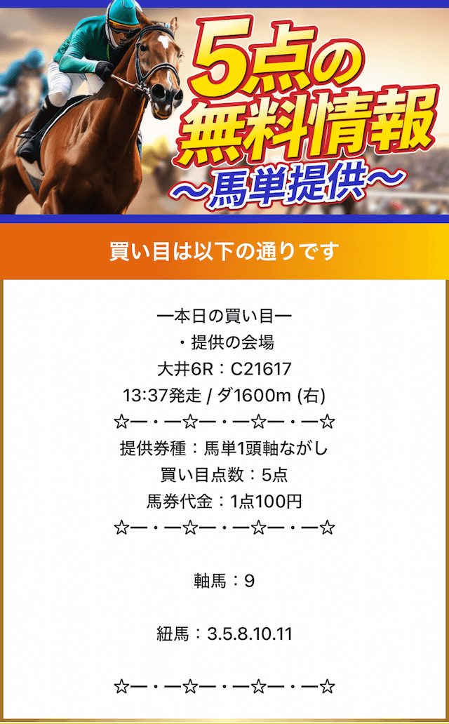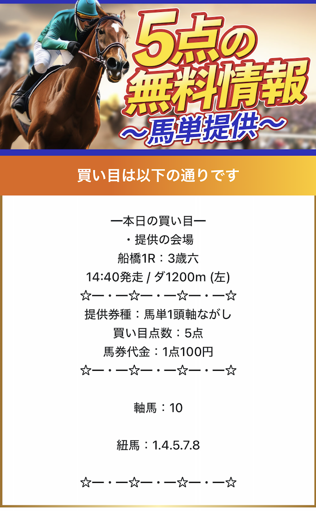 - 提供:1レース/日