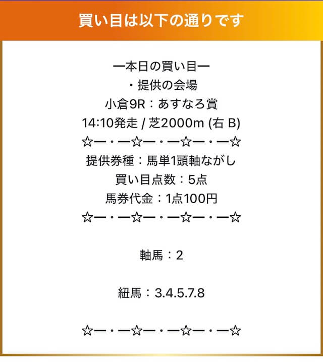 実際に提供された買い目はこちらです。