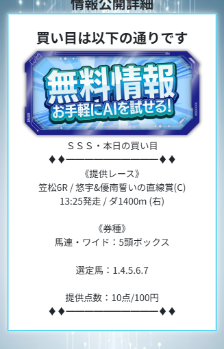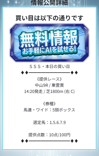 トリプルSのAIは過去30年分のデータを与えていると書いてあるので、相当高精度な予想を提供してくれるかと思いますが、実際のところは予想に参加してみなければ分かりません。