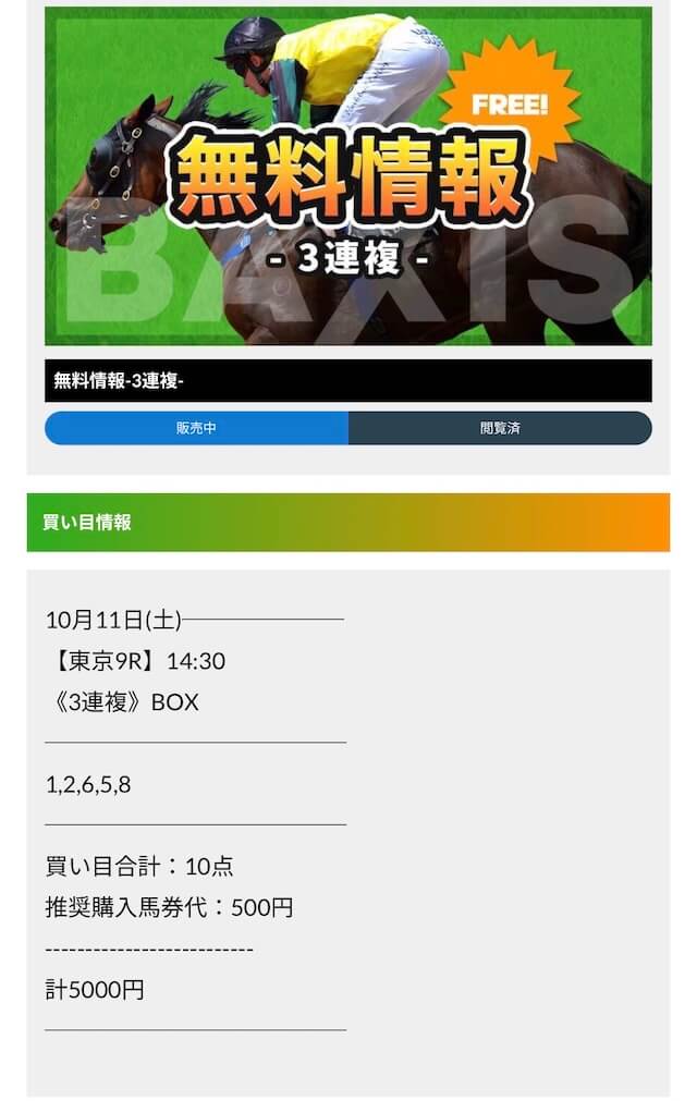 こうして毎週4レース分の無料予想を公開しているのがバクシスの特徴となっていました。