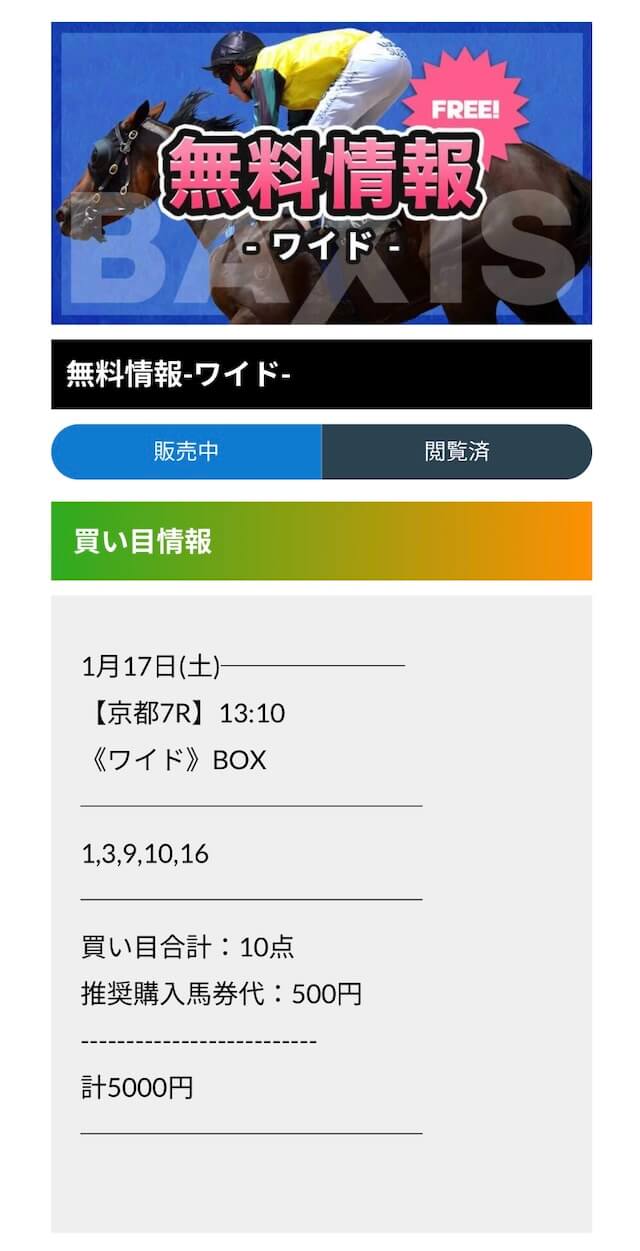 今回レビューしたのは、「バクシス」という競馬予想サイト。
