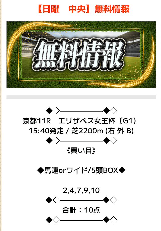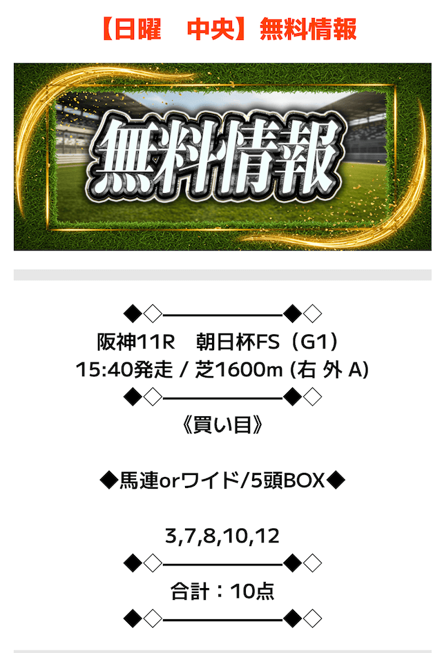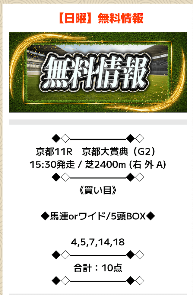 | おすすめポイント③ | 点数は10点と無駄な買い目は排除している |