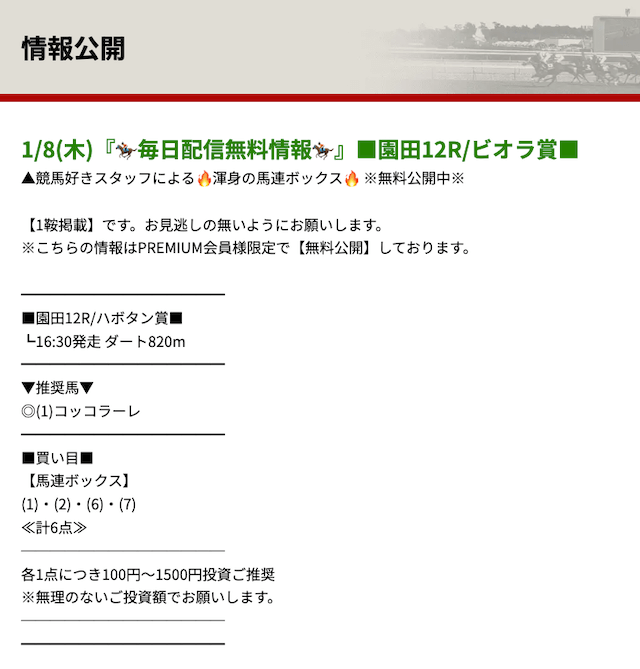 ※全サイト登録から無料予想の閲覧まで完全無料です。