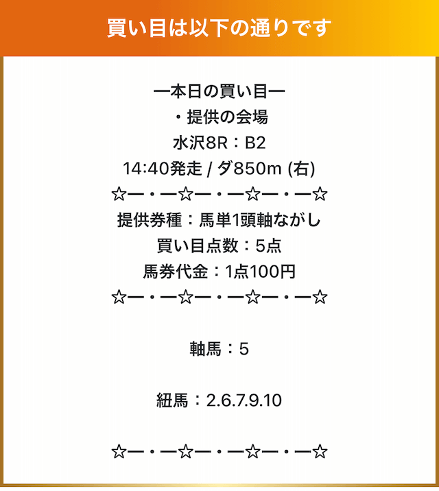 | 盛岡08R | スターアイランド | 2番人気 | 3.1倍 | 2着 | ☓ |