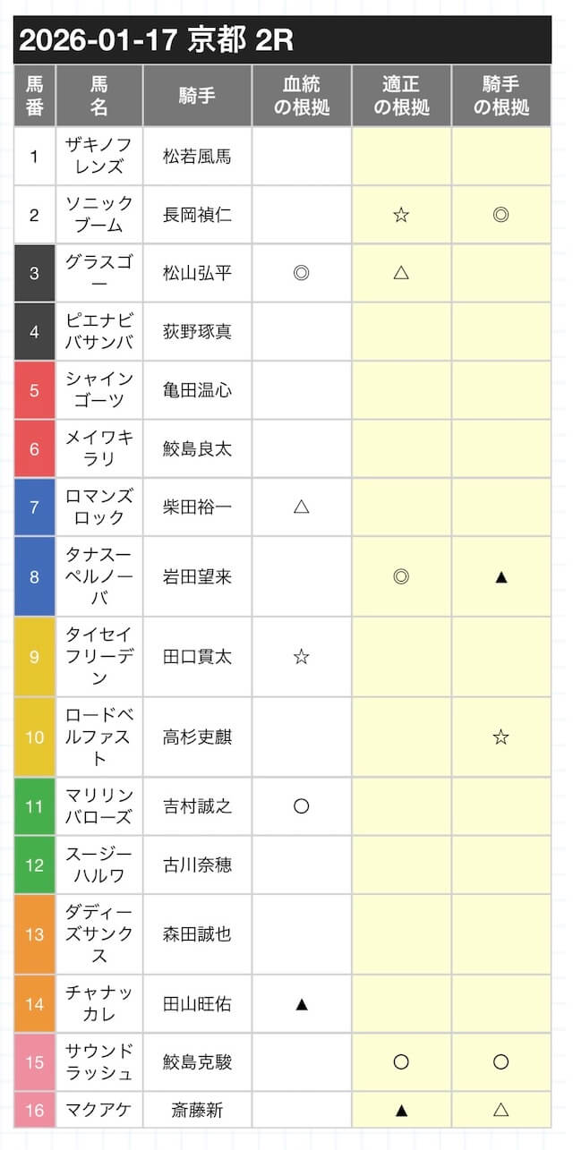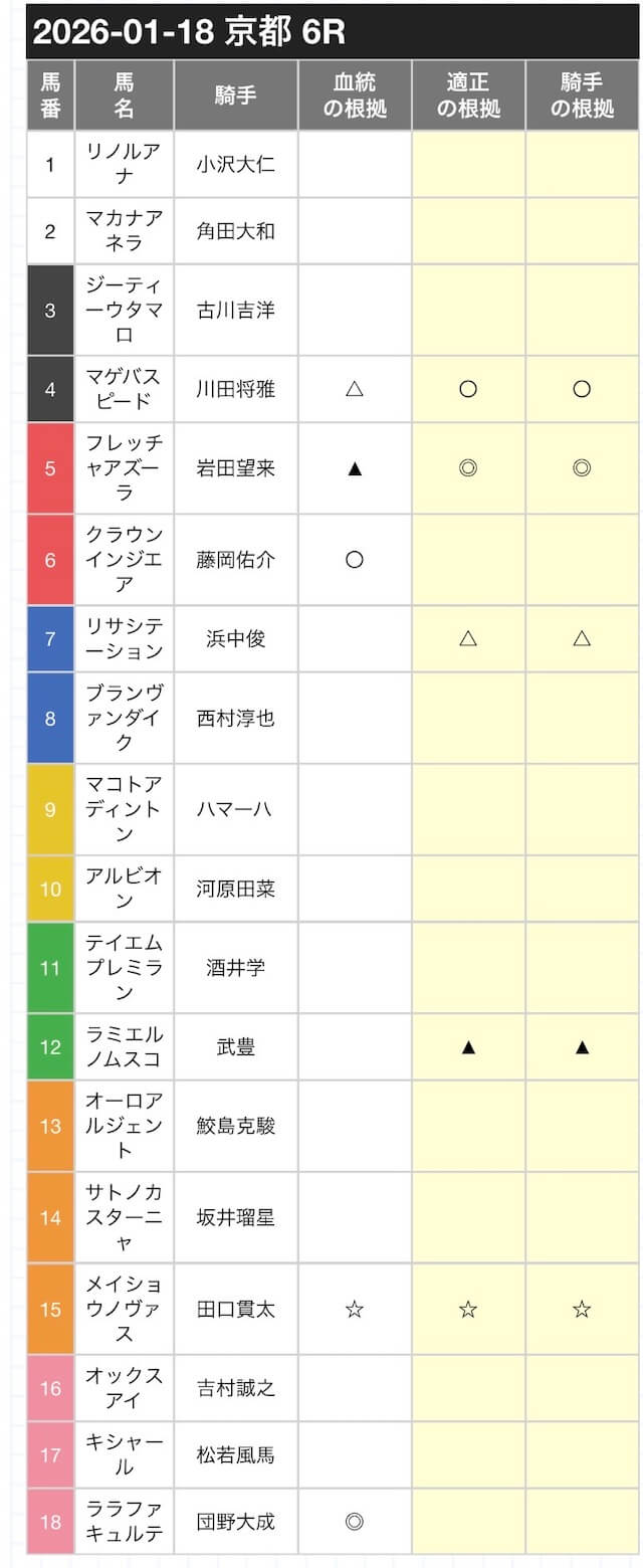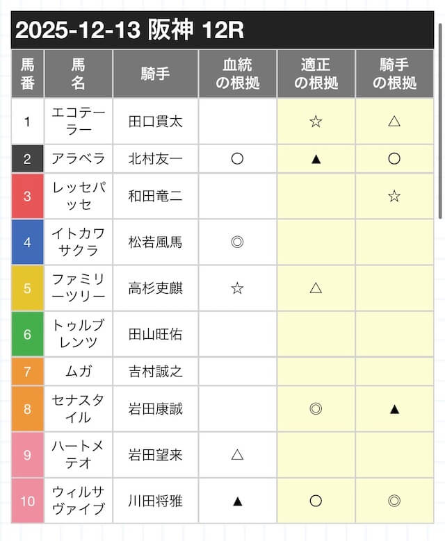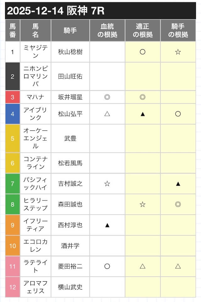 | ⑦コパシーナ | 94 | ◎ | 本命 |