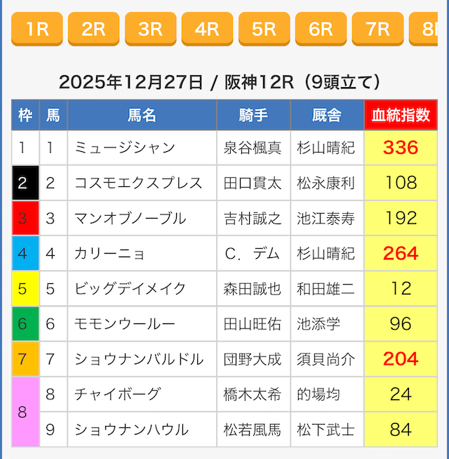 | 馬名 | 指数 | 印 | 支持 |