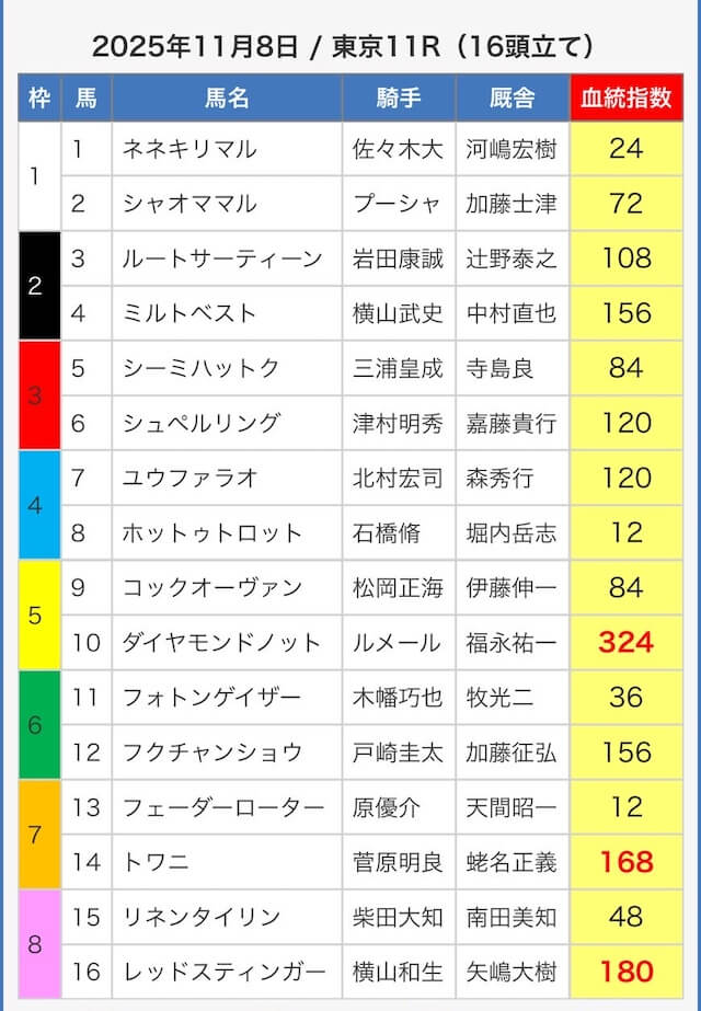 | 11月8日東京11R | ワイド | 10,000円 | 91,600円 | 916% | |
