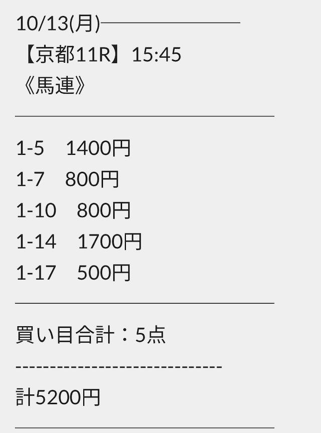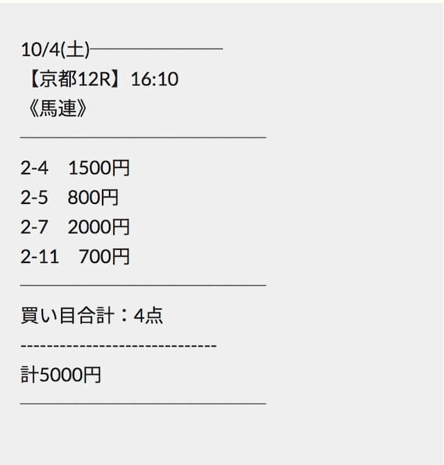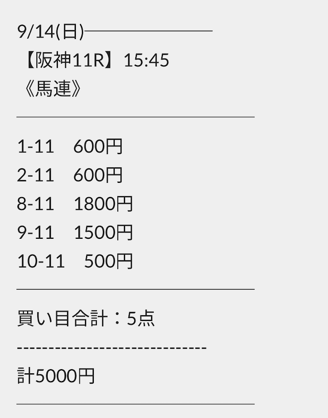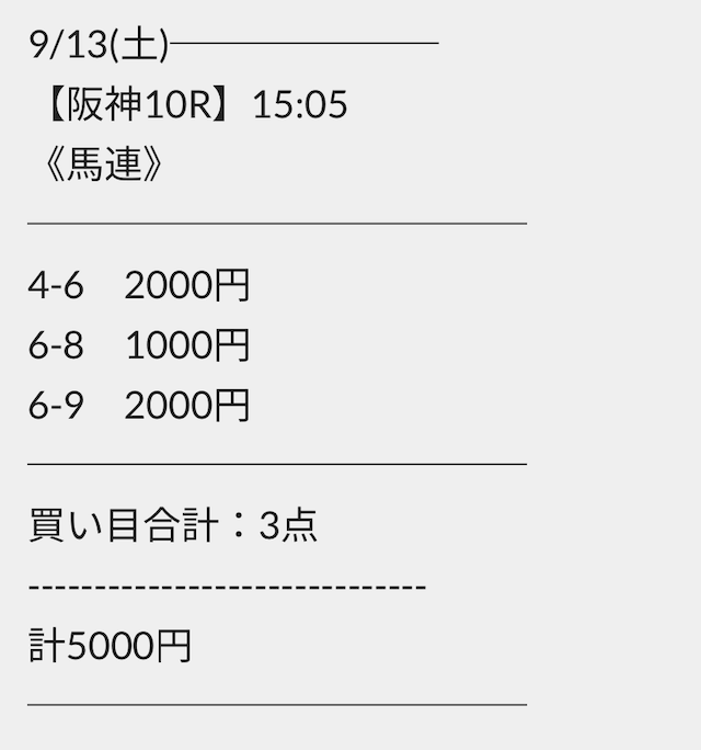 券種はワイド・馬連の2つで、これはレースによって異なっていました。