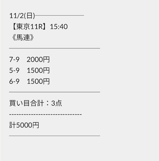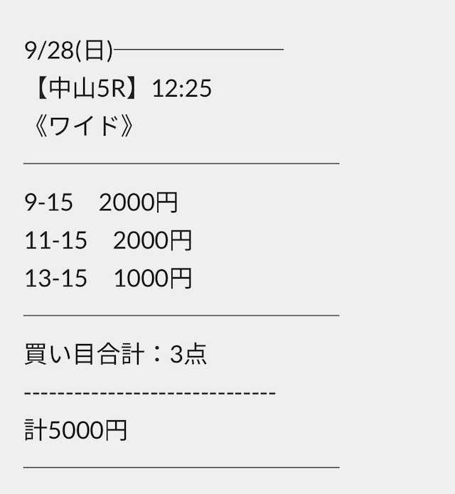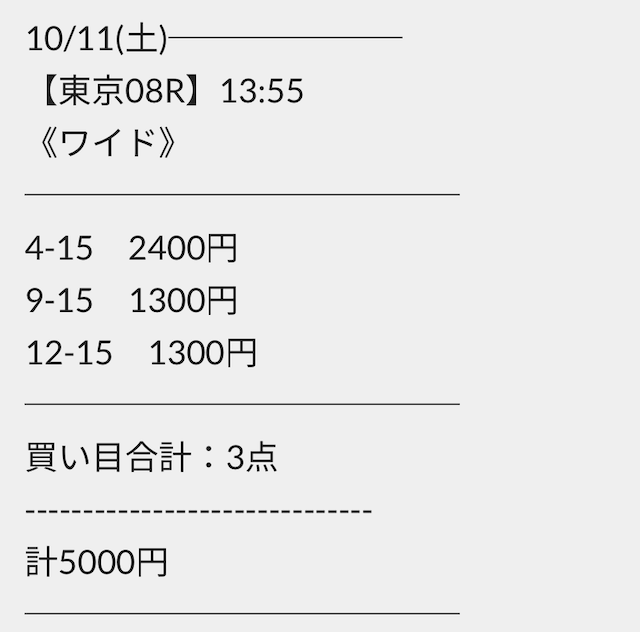 ワイド3点で馬券代が5,000円以内なのは嬉しいポイントだよね。