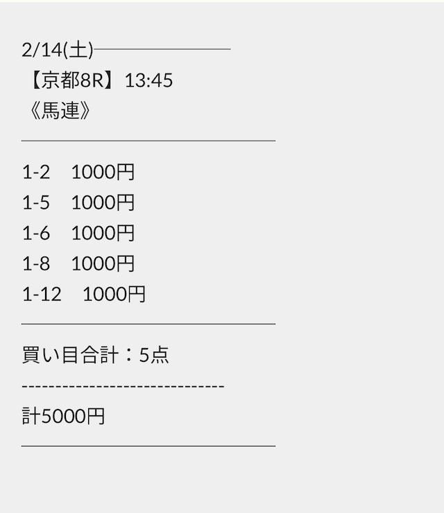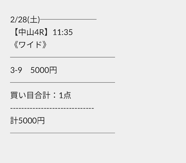 券種はワイド・馬連の2つで、これはレースによって異なっていました。