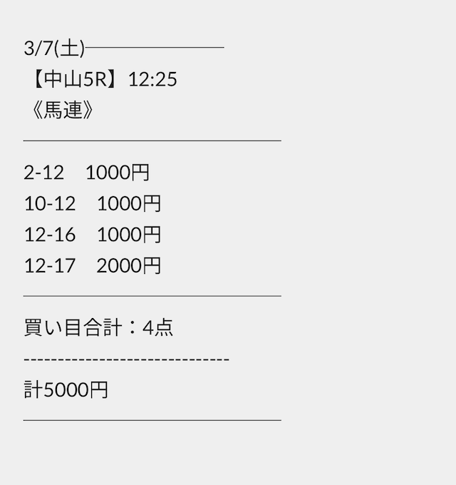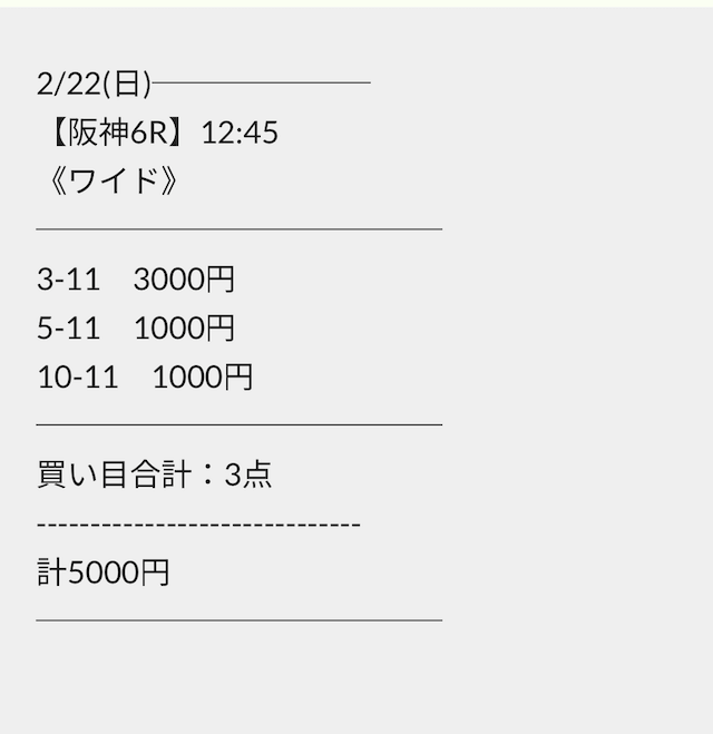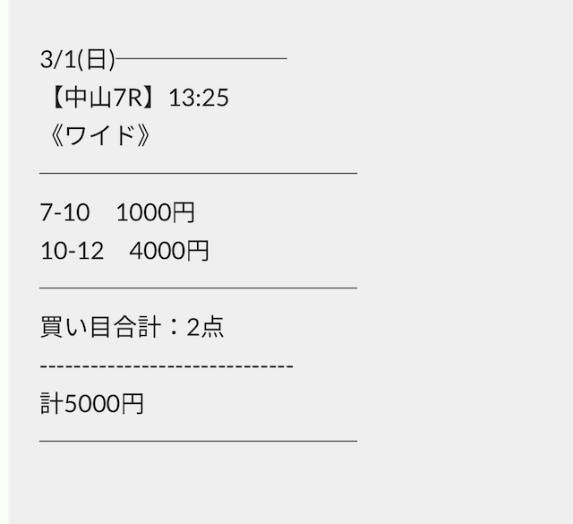 ワイド3点で馬券代が5,000円以内なのは嬉しいポイントだよね。