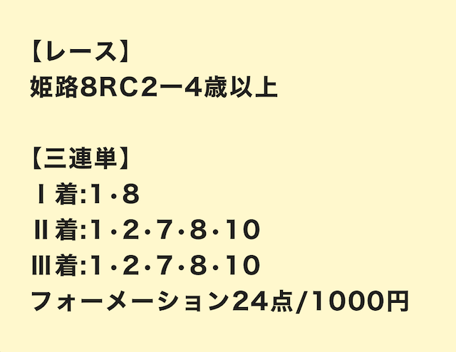脚質は逃げが有利なため、買い目に含んでおきましょう。