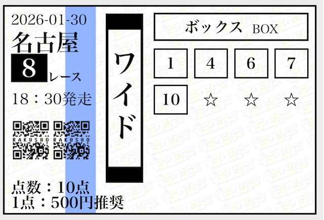 最新30件の詳細- 的中 1月30日 名古屋8R