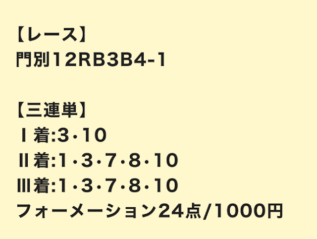 12月3日名古屋11R | 3連複 | 10,000円 | 23,700円 | 237% | |