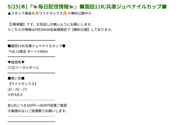 戦績 | 70戦60勝10敗 | 的中率 | 85.7% | 回収率 | 258.9% |