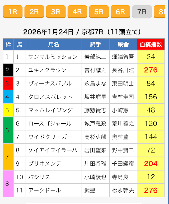 - 不的中 1月10日 京都7R