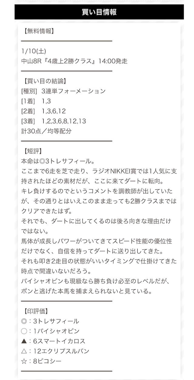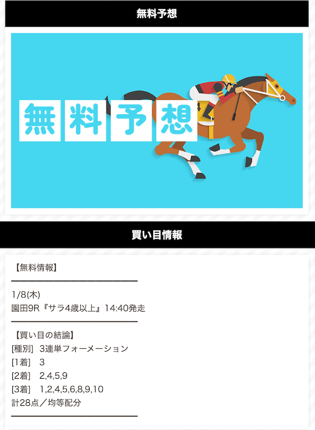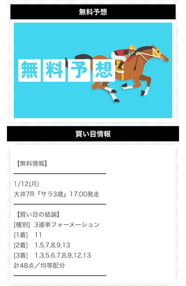 有料予想になると1レースでしっかり稼げる実力を持っていたので、短期で利益を求めている方にピッタリです。