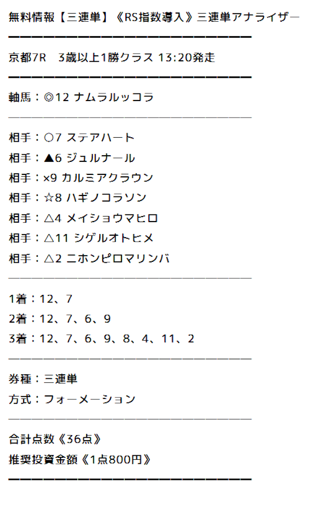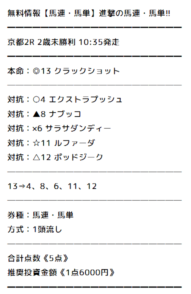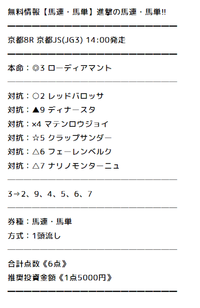 無料予想がっつりだなほんとにww投資大きい分リターンも大きくて、ギャンブラー向けの予想って感じがする。