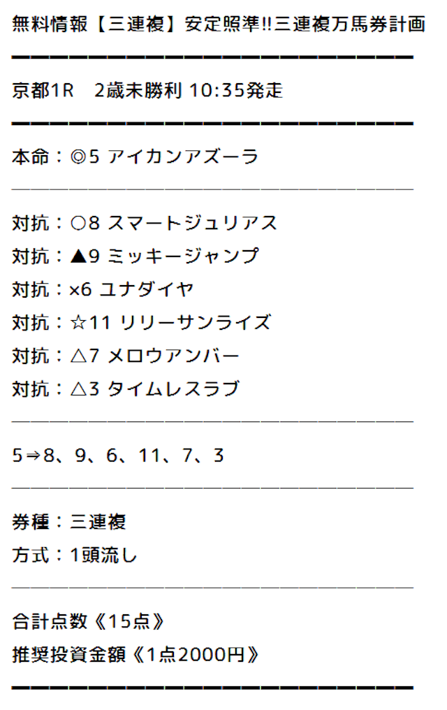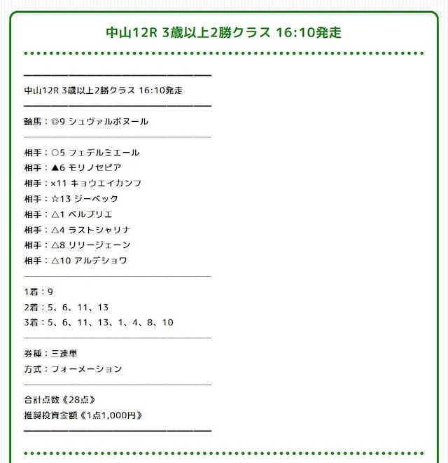 また1日に複数券種の予想が公開されることがあるので、情報量としては申し分ない印象です。