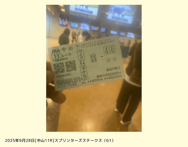 進撃の馬連はトリガミだったけど当たってはいる。単複の帝王も堅実で助かった。