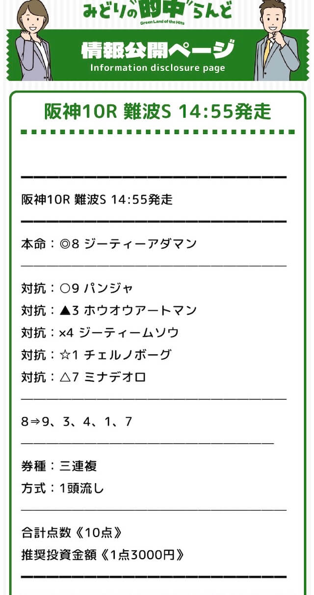 1レース1レース渾身の買い目を提供しているというみどりの的中ランド。