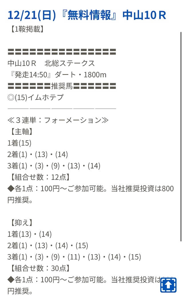 - 無料予想で得た資金を有料予想に充ればさらに利益が伸ばせるポテンシャルあり