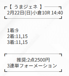 うまジェネの無料予想詳細