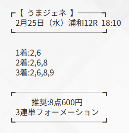 最近検証したレースは2月25日の浦和12Rです。