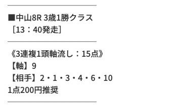 3連複で勝負してて2回勝ってるだけでも十分だけど、せっかくならもっとガツンと稼ぐことに期待したい。