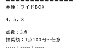 | 予想師 | 競馬予想20年以上の馬券師 |