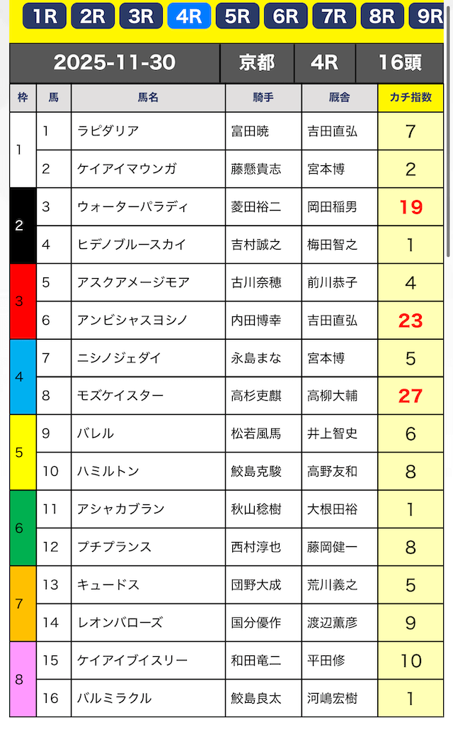 また、カチケンの予想は全て「指数」で公開されており、具体的な買い方は明記されていません。