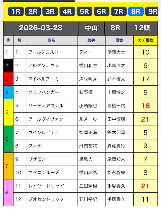 無料予想に何戦か参加しましたが、指数が高い馬を選ぶとなかなか当たらない。的中率を維持するためにも、評価の高い馬を推奨する傾向があるのかな?