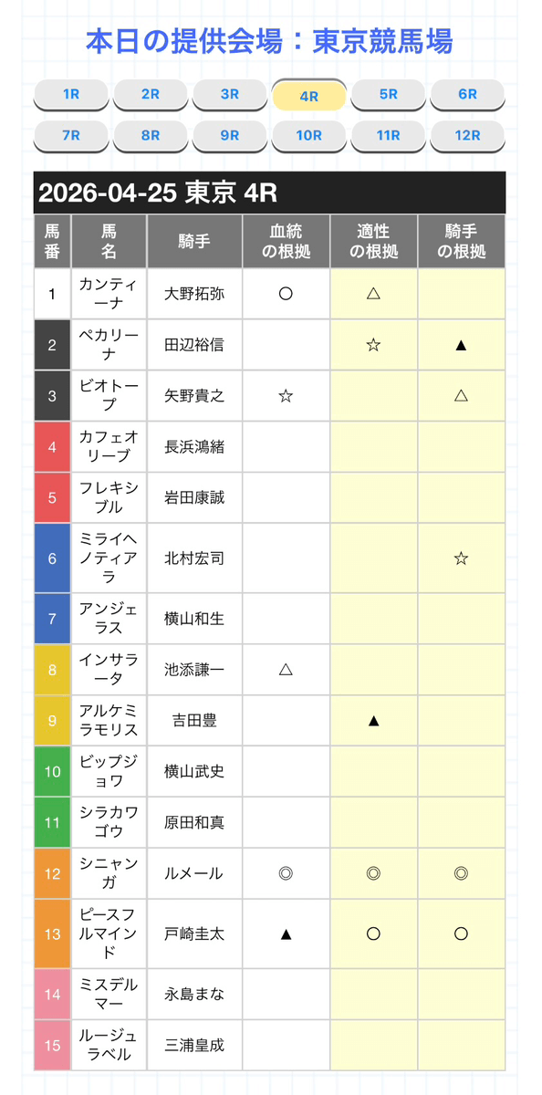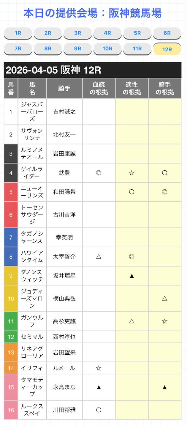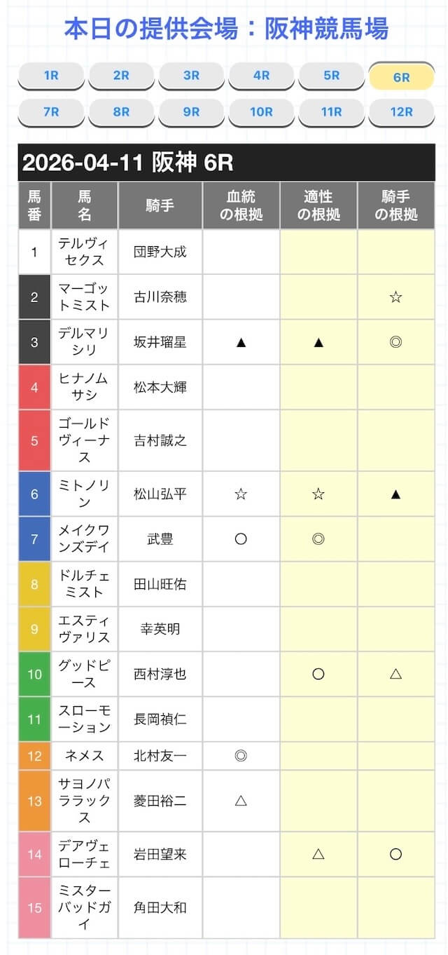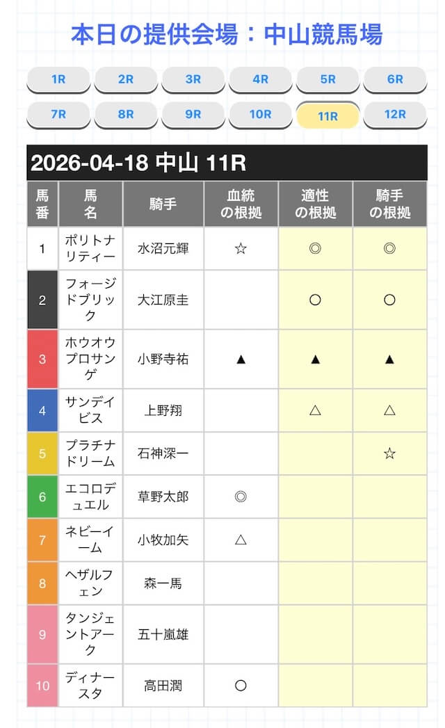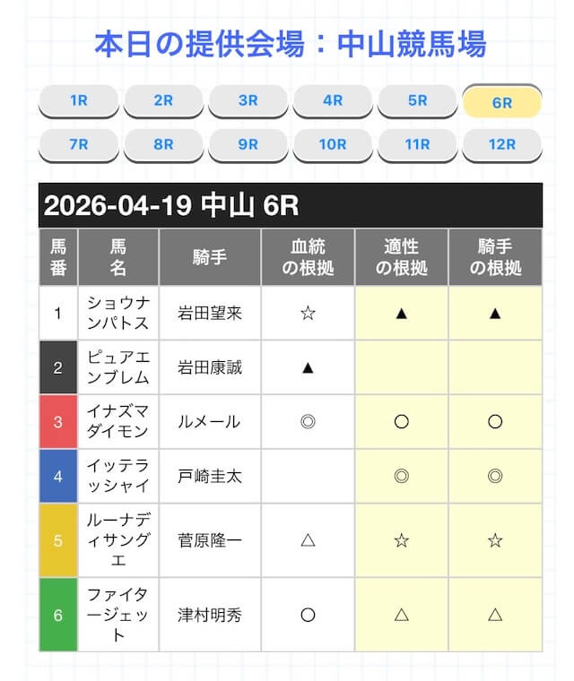 このサイトの無料予想は、よくある「買い目公開型」ではなく、印(◎◯▲△☆)と期待値のみを提示するタイプです。