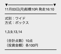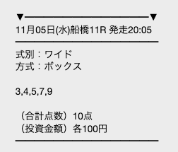 ※カメラマークをクリックすると実際に公開された買い目が見れます。