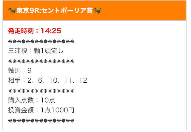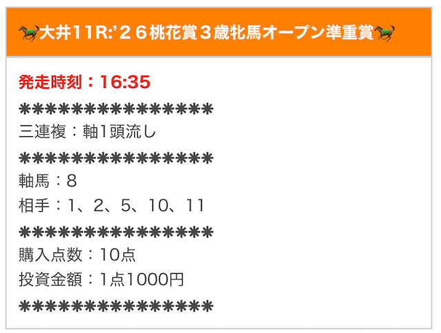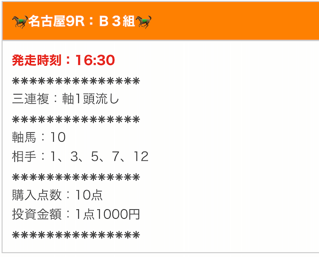 さっそく、ケイバ一番星が公開した買い目を確認していきましょう。
