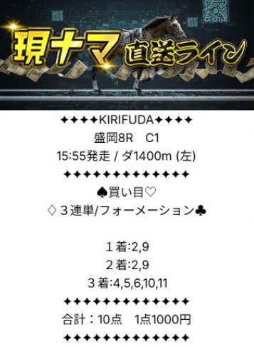 2025.11.13:【無料予想】門別10Rで469,300円を獲得!