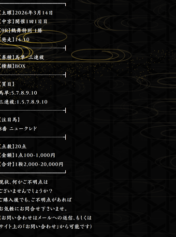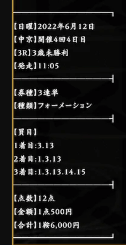 | スタイル | できるだけリスクを抑えつつ回収率を重視して一撃を狙う |