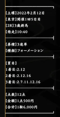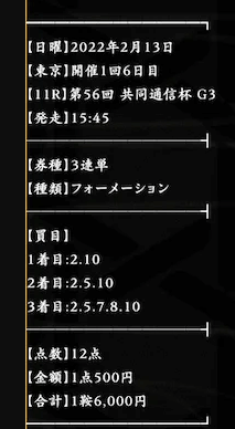 - 的中 2月16日 東京11R