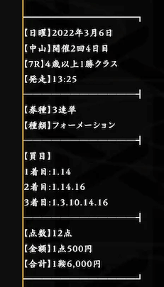 私が確認した中で最も払戻金額が高かった、2022年1月9日の中山11レースで確認します。