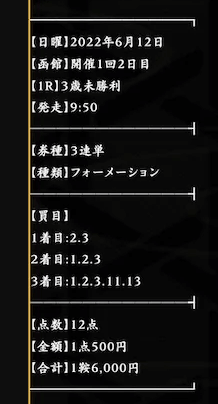- 券種:3連複・馬単