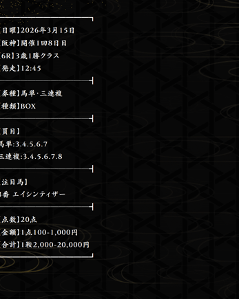 - 的中 3月15日 阪神6R