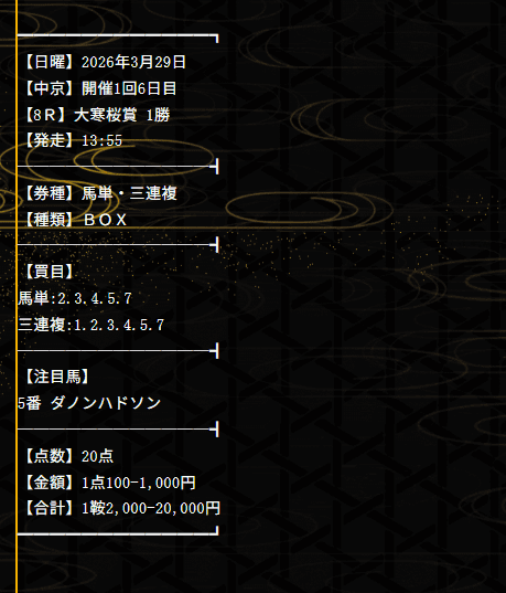 - 的中 3月29日 中京8R